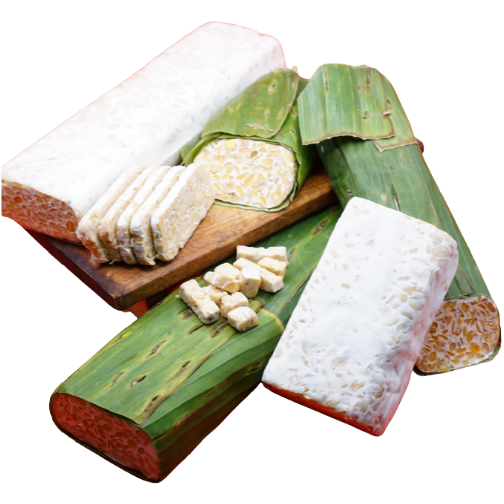 Tempe berkualitas premium dibungkus daun pisang tradisional, memberikan aroma dan rasa khas yang autentik. Cocok untuk berbagai masakan tradisional maupun modern.